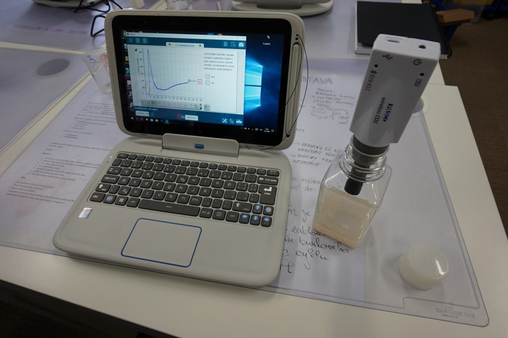 Čo sme robili: žiaci mali skúmať aký má vplyv pitie nápojov na naše trávenie. Mali k dispozícii viacero nápojov, ktoré mladí ľudia pijú, ale ja minerálky a čistú vodu. Žiaci mali pripravené tablety, bezdrôtové pH senzory a e-pracovný list pre bádateľskú prácu (kreatívne vzdelávacie, interaktívne prostredie – Spakvue), kde mali zadaný problém, mali si postaviť hypotézu, navrhnúť postup výskumnej práce, realizovať merania, analyzovať výsledky a spracovať záver. Výstupom bol e-protokol, ktorý učiteľ aj žiak môžu spolu analyzovať a hodnotiť a podľa potreby aj upraviť a doplniť. Z cvičenia bola spracovaná foto a video dokumentácia.
